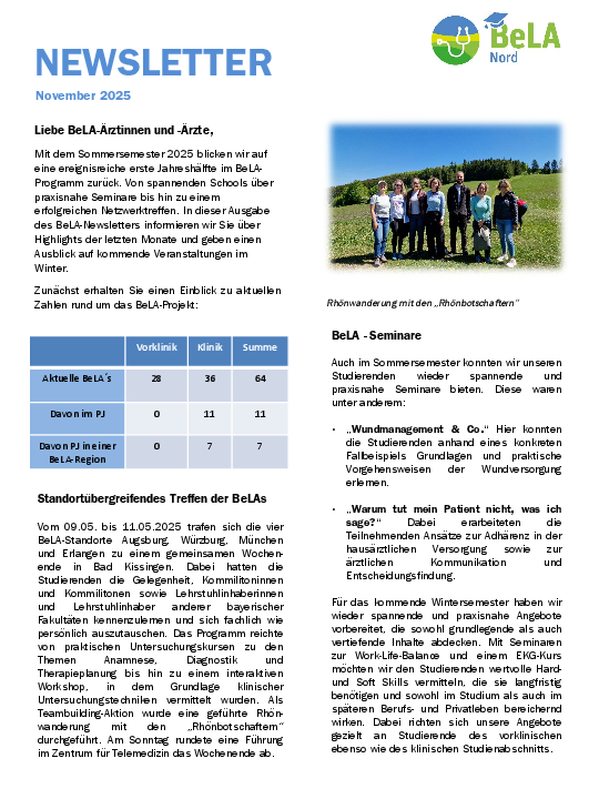 NEWSLETTER November 2025 AUSGABE DEZEMBER 2019 Liebe BeLA-Ärztinnen und -Ärzte, Mit dem Sommersemester 2025 blicken wir auf eine ereignisreiche erste Jahreshälfte im BeLAProgramm zurück. Von…